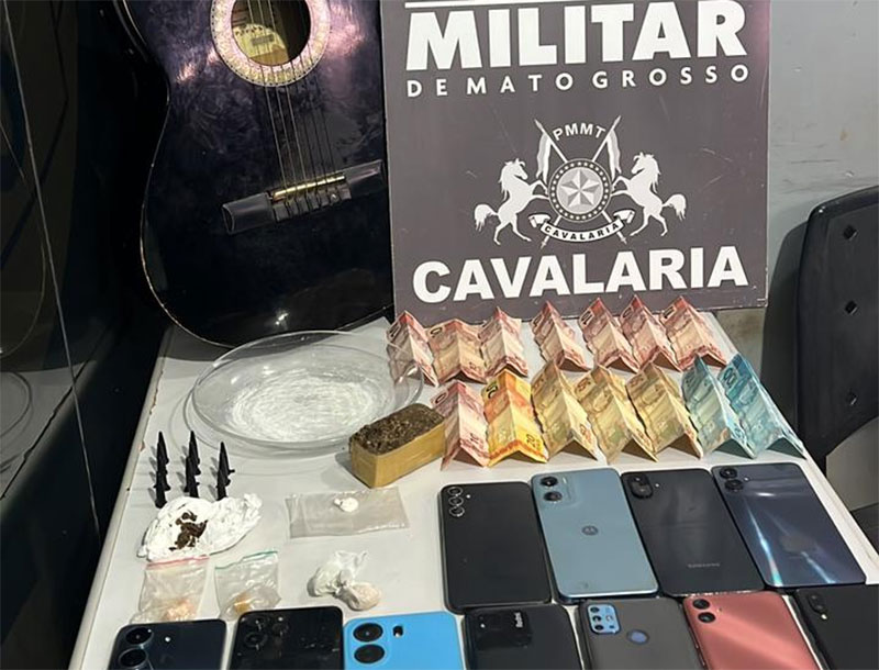 Policiais militares da Cavalaria da PM de Nova Mutum prenderam dois suspeitos, de 19 e 18 anos, e apreenderam quatro adolescentes, na noite deste sábado (21.2), por tráfico ilícito de drogas, no município. Com o grupo, foram encontradas porções de entorpecentes análogas à maconha, cocaína e pasta base, além de dinheiro em espécie e diversos aparelhos celulares. A ocorrência foi registrada por volta das 21h32, no bairro…