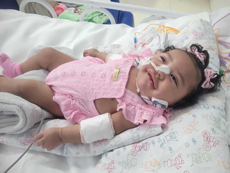 Em janeiro, a bebê realizou o procedimento de distração osteogênica mandibular, cirurgia inédita pelo Estado para aumentar o espaço das vias aéreas e ajudá-la a mastigar: um dispositivo (distrator) foi fixado no rosto da criança para alongar a mandíbula de forma gradual. Quando a paciente não tiver mais dificuldade mastigatória e houver a consolidação óssea, o dispositivo será removido.