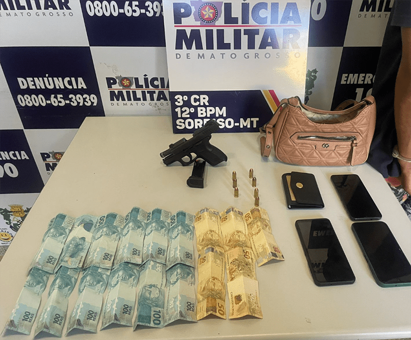 A equipe entrou no local e encontrou uma mulher e dois homens, que foram abordados. Durante buscas, uma pistola calibre .40 com sete munições foi localizada, além de uma quantia em dinheiro.