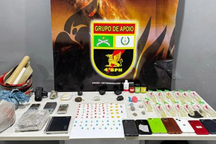 Após ser abordado, as equipes apreenderam diversas porções de entorpecentes, entre maconha, pasta base de cocaína e munições de calibre diversos. O veículo que o suspeito estava também foi apreendido.