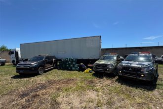 Na abordagem, três homens informaram ser motoristas da empresa. A vítima, que é gerente da empresa de locação de veículos, compareceu no local e identificou os caminhões, sendo os mesmos locados na data do furto.