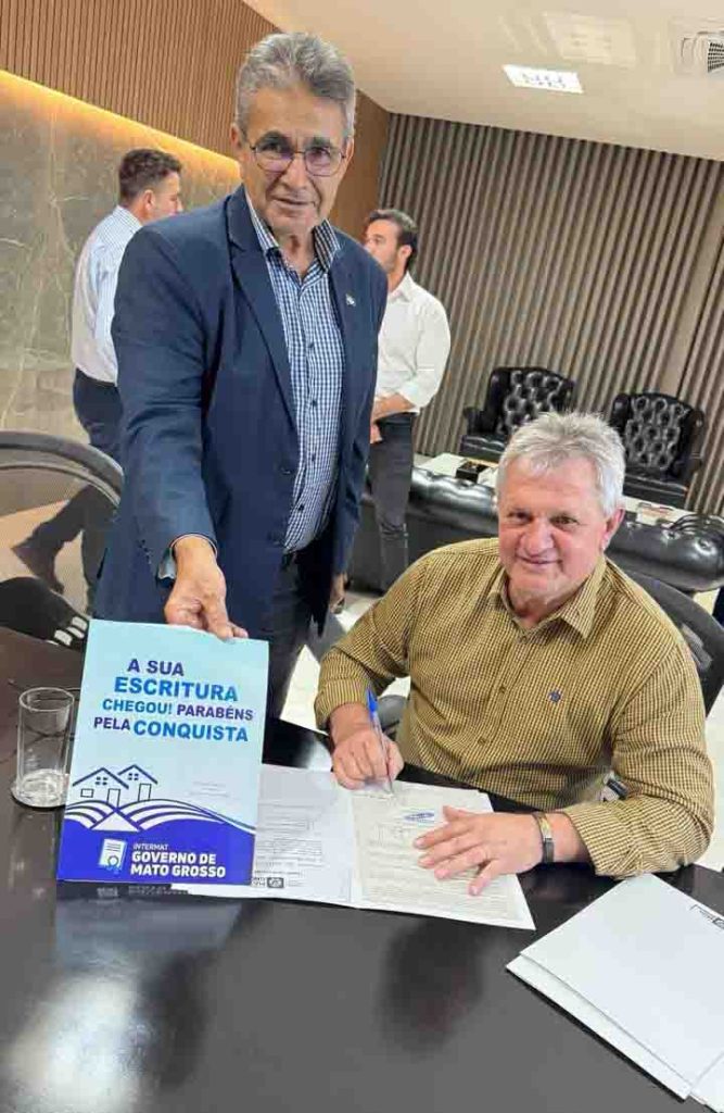 Após anos de cobrança e articulação, governo de Mato Grosso, Dilmar Dal Bosco, Apromundo e Intermat entregam primeiros títulos e destravam regularização de mais de 500 propriedades rurais.