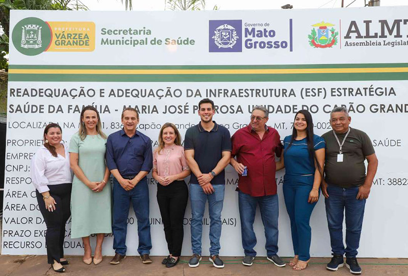 A Prefeitura de Várzea Grande deu mais um passo decisivo na reestruturação da rede municipal de saúde. Na tarde desta segunda-feira (13), a prefeita Flávia Moretti (PL) assinou a ordem de serviço para readequação e adequação da infraestrutura da ESF “Maria José Pedrosa”, no bairro Capão Grande. A solenidade contou com a presença do deputado estadual Wilson Santos (PSD), da secretária de Saúde Deisi Bocalon, dos vereadores Charles da Educação (União) e Jânio Calistro (União), e do presidente do bairro, José do Carmo Filho, o “Japão”.